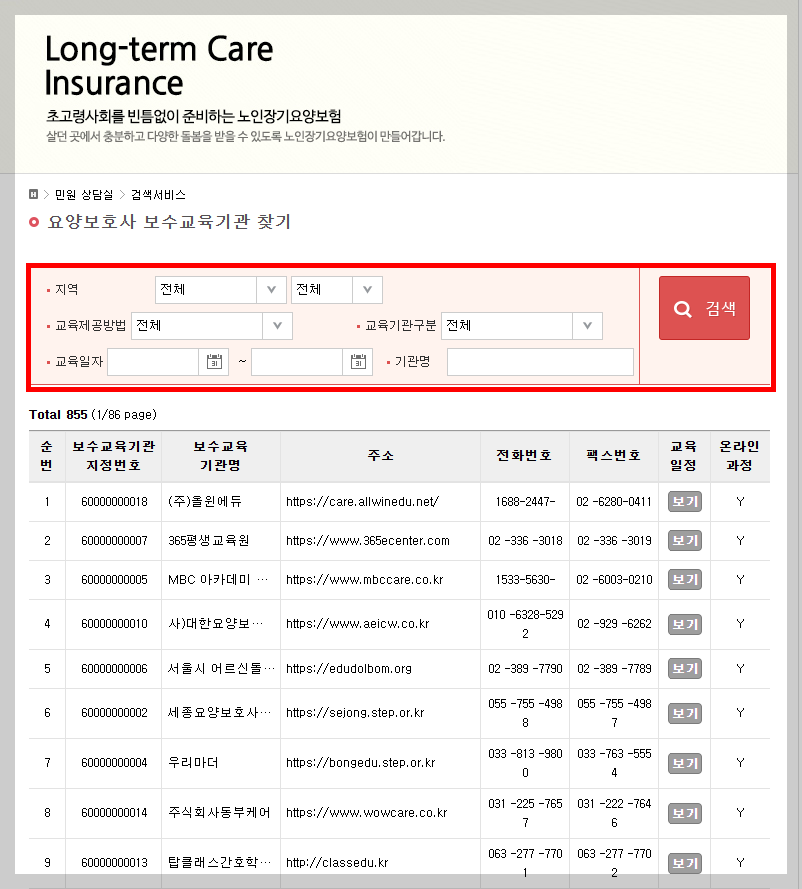 ✔ 국민건강보험공단 홈페이지에서 ‘교육기관 찾기’ 메뉴 이용