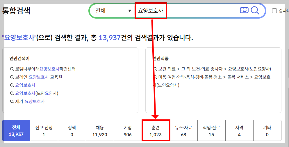 - ‘훈련과정 찾기’ 메뉴에서 ‘요양보호사’ 검색 →