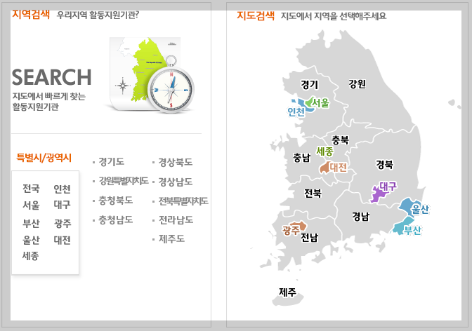 홈페이지 내 지역 선택 기능으로 쉽게 가까운 교육기관을 찾을 수 있어요.